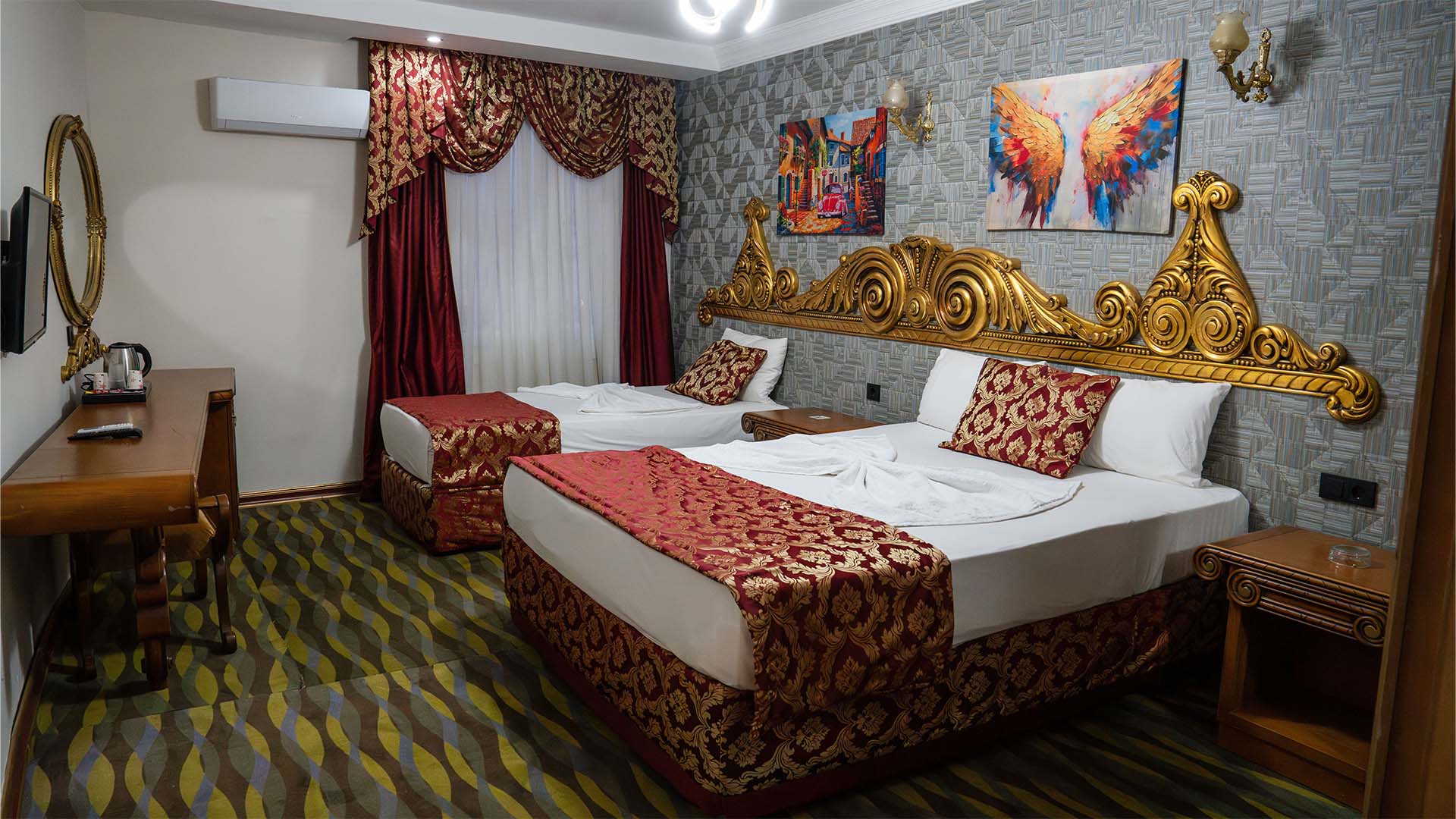 60 m²Ailece konaklamalar için tasarlanan Family Oda, Mersin otel konforunu geniş bir alan ve çok yatak seçeneği ile sunar. Bir çift kişilik ve bir tek kişilik yatağıyla aileler için özel olarak hazırlanan bu oda, Mezitli otel alternatifleri arasında öne çıkar. Sio Hotel'in şehir oteli olanakları ile birleşen geniş Family Oda, ailelere birlikte vakit geçirme ve rahatça dinlenme olanağı sunar. Mersin city hotel konseptinde, ailenizle keyifli bir konaklama yaşayın.
